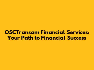 Hey guys! Let's dive into the world of OSCTransam Financial Services. This isn't just another financial institution; it's a partner in your journey towards achieving your financial dreams. We're going to explore what makes OSCTransam tick, what services they offer, and how they can help you navigate the often-complex world of finance. Get ready to unlock some valuable insights and discover how OSCTransam can empower you to take control of your financial future. We will discuss their core values, services, and the benefits they offer to clients. Whether you're a seasoned investor or just starting to manage your finances, this guide is designed to provide you with the information you need to make informed decisions and thrive. So, buckle up, and let's get started on this exciting exploration!