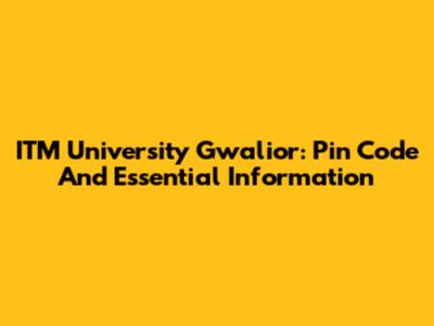 ITM University Gwalior: Pin Code And Essential Information