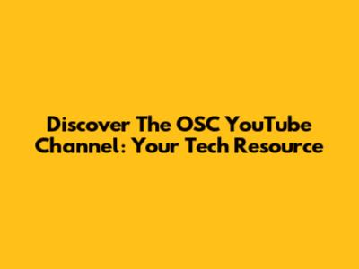 Discover The OSC YouTube Channel: Your Tech Resource