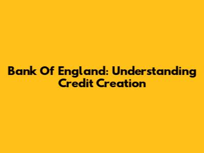Bank Of England: Understanding Credit Creation