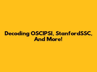 Decoding OSCIPSI, StanfordSSC, And More!