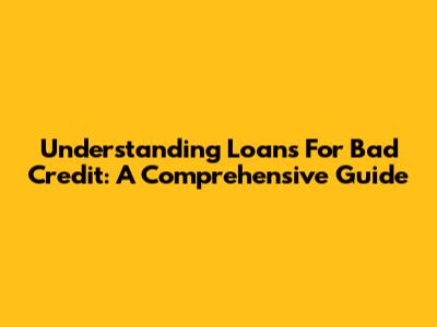 Understanding Loans For Bad Credit: A Comprehensive Guide
