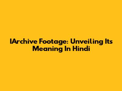 IArchive Footage: Unveiling Its Meaning In Hindi