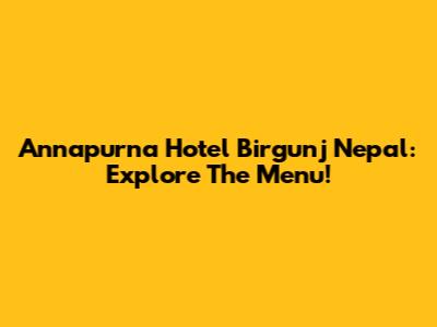 Annapurna Hotel Birgunj Nepal: Explore The Menu!