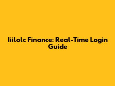 Iiilolc Finance: Real-Time Login Guide