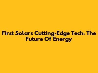 First Solar's Cutting-Edge Tech: The Future Of Energy