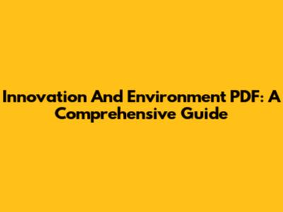 Innovation And Environment PDF: A Comprehensive Guide