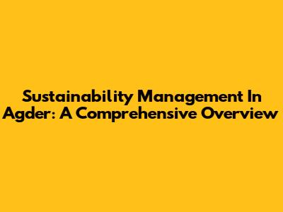 Sustainability Management In Agder: A Comprehensive Overview