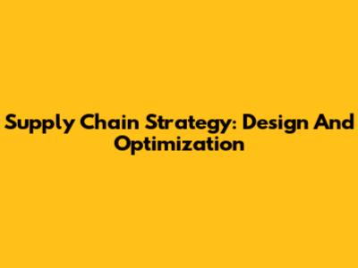 Supply Chain Strategy: Design And Optimization