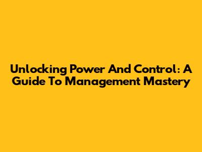 Unlocking Power And Control: A Guide To Management Mastery