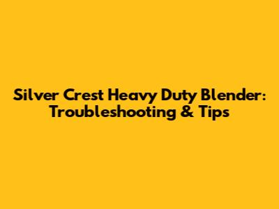 Silver Crest Heavy Duty Blender: Troubleshooting & Tips