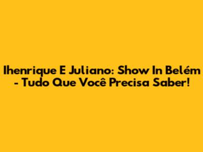 Ihenrique E Juliano: Show In Belém - Tudo Que Você Precisa Saber!
