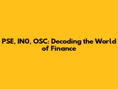 Hey finance enthusiasts! Ever heard of PSE, IN0, and OSC and wondered what they actually mean? Well, buckle up, because we're about to dive deep into the fascinating world of finance, specifically exploring these intriguing codes. This article is your ultimate guide to understanding these key players and how they shape the financial landscape. We'll break down each one, exploring their significance, and how they contribute to the bigger picture. So, whether you're a seasoned investor or just starting to dip your toes into the world of finance, this guide is designed to enlighten and empower you.