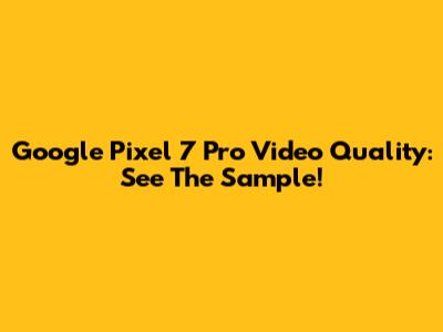 Google Pixel 7 Pro Video Quality: See The Sample!