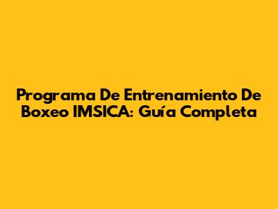 Programa De Entrenamiento De Boxeo IMSICA: Guía Completa