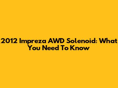 2012 Impreza AWD Solenoid: What You Need To Know