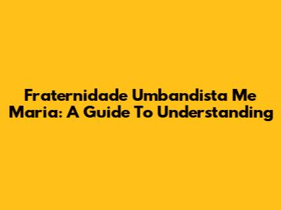 Fraternidade Umbandista Me Maria: A Guide To Understanding