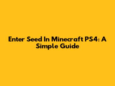 Enter Seed In Minecraft PS4: A Simple Guide