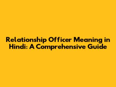 Relationship Officer in Hindi: The Translation and Its Nuances