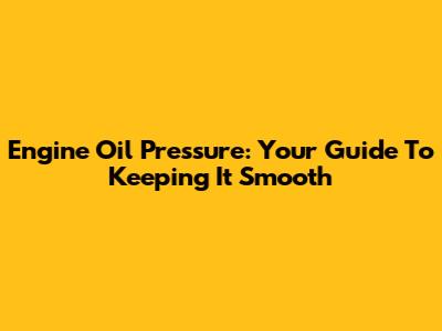 Engine Oil Pressure: Your Guide To Keeping It Smooth