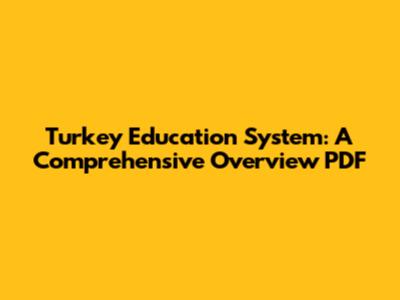 Turkey Education System: A Comprehensive Overview PDF