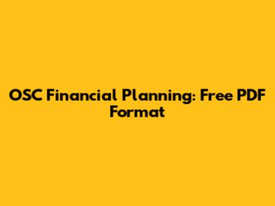 OSC Financial Planning: Free PDF Format