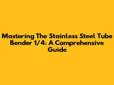Mastering The Stainless Steel Tube Bender 1/4: A Comprehensive Guide