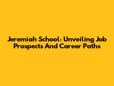 Jeremiah School: Unveiling Job Prospects And Career Paths