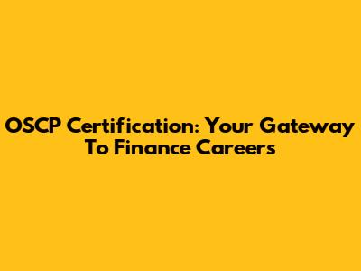 OSCP Certification: Your Gateway To Finance Careers