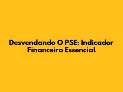 Desvendando O PSE: Indicador Financeiro Essencial