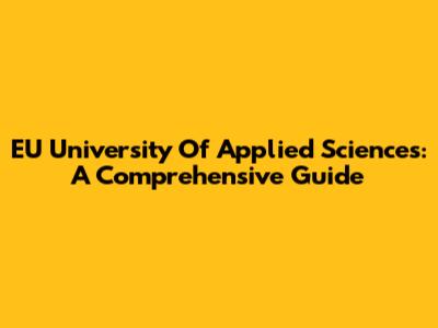 EU University Of Applied Sciences: A Comprehensive Guide