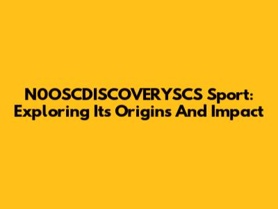 N0OSCDISCOVERYSCS Sport: Exploring Its Origins And Impact