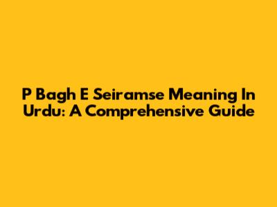 P Bagh E Seiramse Meaning In Urdu: A Comprehensive Guide