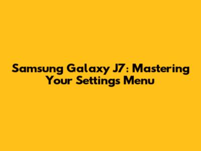 Samsung Galaxy J7: Mastering Your Settings Menu