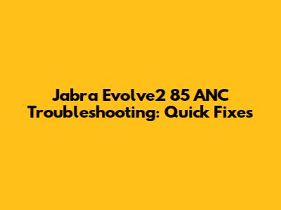 Jabra Evolve2 85 ANC Troubleshooting: Quick Fixes