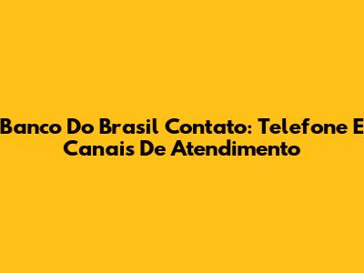 Banco Do Brasil Contato: Telefone E Canais De Atendimento