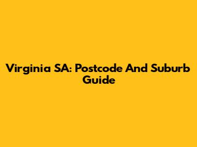 Virginia SA: Postcode And Suburb Guide