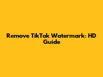 Remove TikTok Watermark: HD Guide