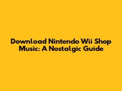 Download Nintendo Wii Shop Music: A Nostalgic Guide