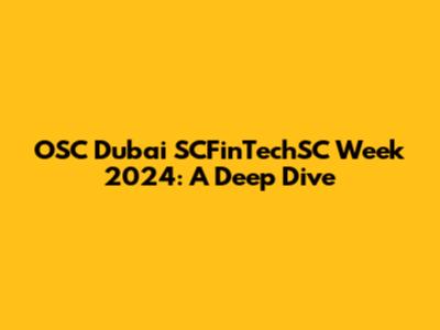 OSC Dubai SCFinTechSC Week 2024: A Deep Dive