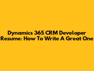 Dynamics 365 CRM Developer Resume: How To Write A Great One