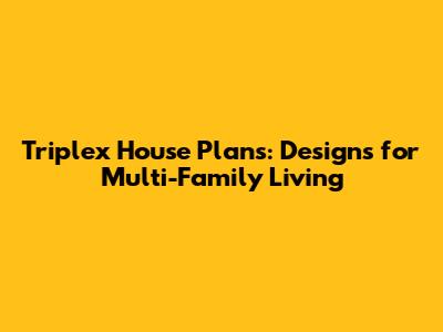 Triplex House Plans: Designs For Multi-Family Living