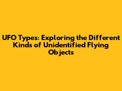 Common Classifications of UFOs