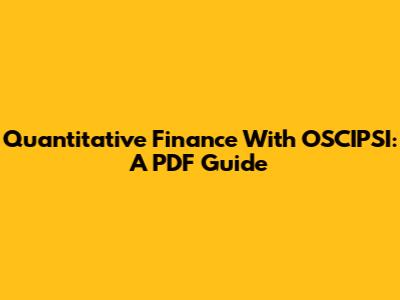 Quantitative Finance With OSCIPSI: A PDF Guide