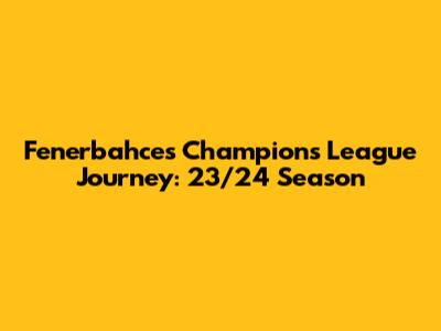 Fenerbahce's Champions League Journey: 23/24 Season