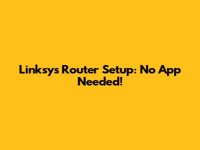 Linksys Router Setup: No App Needed!