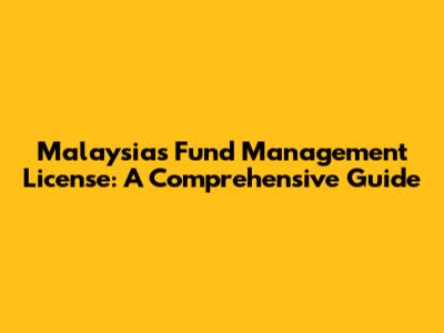 Malaysia's Fund Management License: A Comprehensive Guide