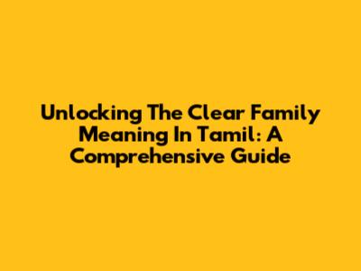 Unlocking The Clear Family Meaning In Tamil: A Comprehensive Guide
