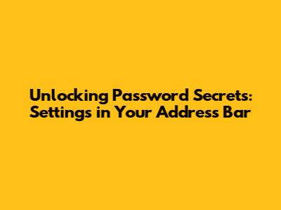 Hey guys, ever wondered about the settings lurking right there in your address bar? You know, that space where you type in websites? Well, it's not just for URLs; it's a gateway to a bunch of stuff, including your passwords! Now, before you start freaking out about security (which is totally valid!), let's dive into what's actually going on and how you can manage your digital life more effectively. I'm talking about the nitty-gritty of how you can view, edit, and understand how your passwords are saved and handled, all from your address bar settings. This isn't just about typing in www.google.com; it's about becoming a digital detective, understanding your online footprints, and keeping your accounts safe. We'll explore the hidden nooks and crannies of your browser's capabilities and give you the lowdown on how to navigate the complex world of password management. From the basics of autofill to the advanced settings that let you fine-tune your browsing experience, we're going to cover it all. So, buckle up, and let's unravel the secrets your address bar holds!