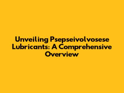 Hey there, lubricant enthusiasts! Ever heard of psepseivolvosese lubricants? Probably not, and that's totally okay! This guide is here to unravel the mystery and offer insights into these specialized substances. We'll dive deep, exploring everything from their unique properties and applications to where you might encounter them and how they function. Buckle up, because we're about to embark on a fascinating journey into the world of psepseivolvosese lubricants, demystifying them step by step. So, what exactly are these things, and why should you care?